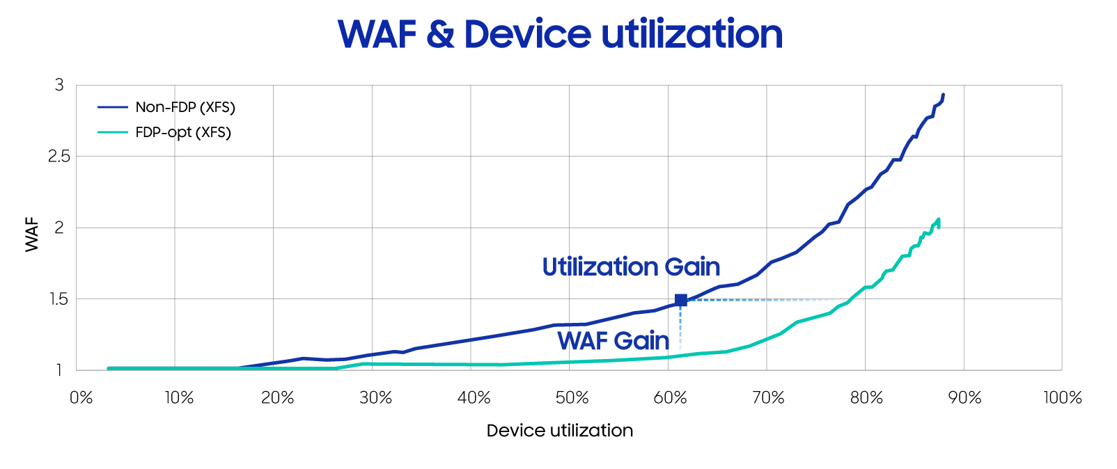 图2. 写放大和SSD容量利用率的相关性