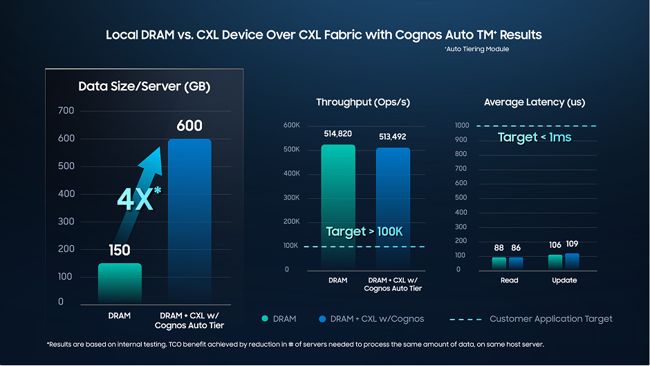 通过在实际运行环境中采用 Cognos 和 CXL,用户成功实现了总体拥有成本提升4倍的成效,同时满足了其在延迟和吞吐量方面的服务等级协议目标。